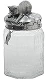 Arthur Court Designs produces an abundance of decorative aluminum accessories in compelling and often whimsical motifs. A perfect gift for the cat owner, this 13-by-6-inch treat jar is sure to delight both the humans and felines in the family. The textured, octagonal glass jar keeps kitty treats dry and fresh with its polished, food-safe aluminum top lined with a rubber gasket and plastic screw threads. The top features a playful kitten eyeing a fish charm that dangles off the side, along with a collar motif inscribed with the words, "Good Kitty."